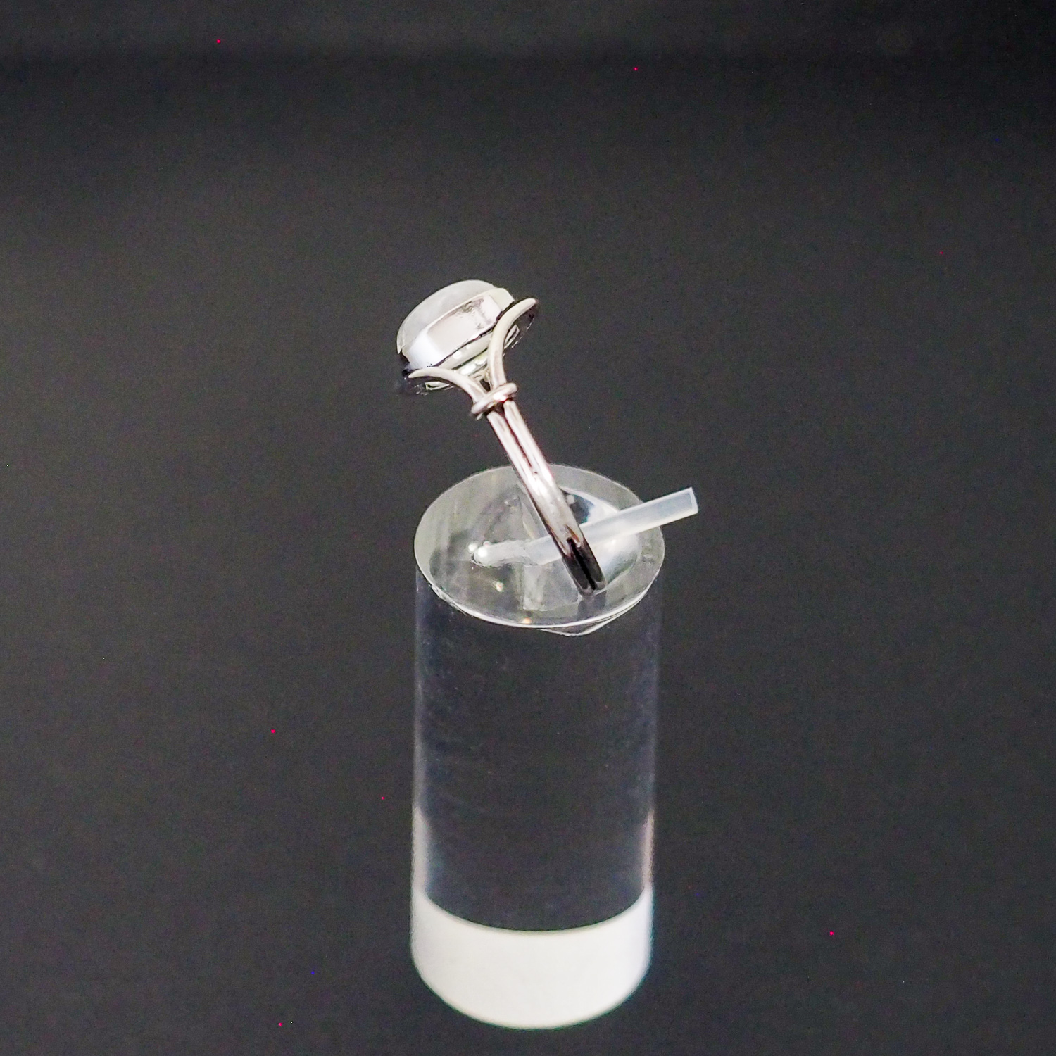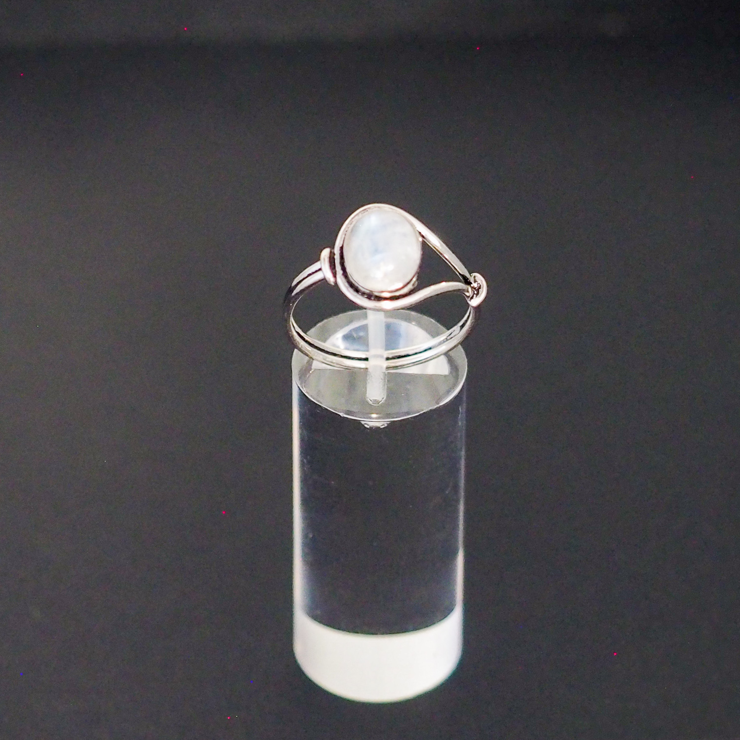 Ring aus 925 Sterlingsilber mit zum Cabochon geschliffenen Mondstein, gefasst durch eine Schlaufe